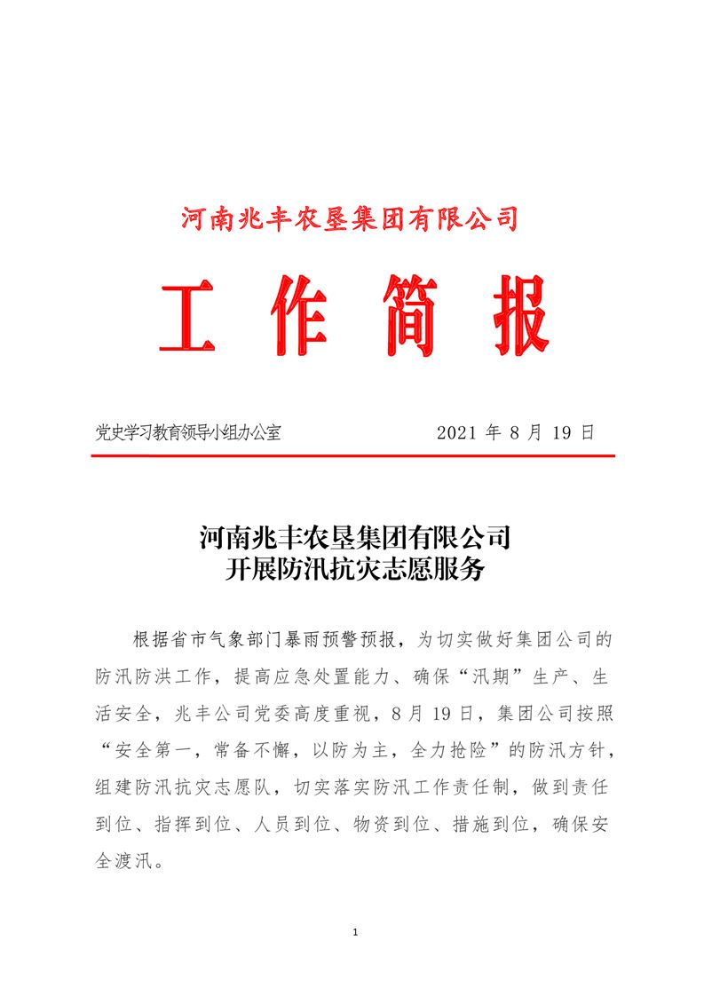 · 【我為職工辦實事】河南兆豐農(nóng)墾集團(tuán)有限公司 開展防汛抗災(zāi)志愿服務(wù)