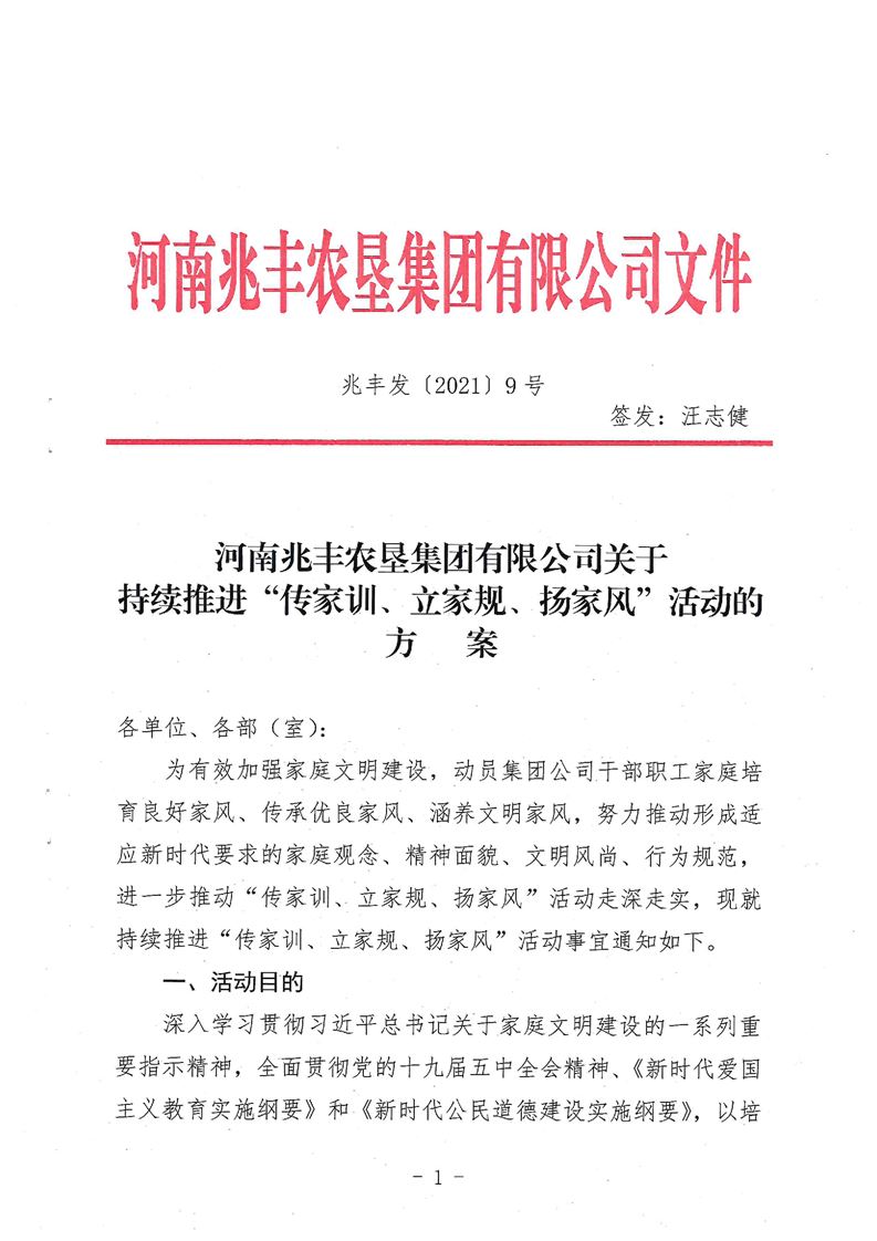 · 河南兆豐農墾集團有限公司 持續(xù)推進“傳家訓、立家規(guī)、揚家風”活動的方案