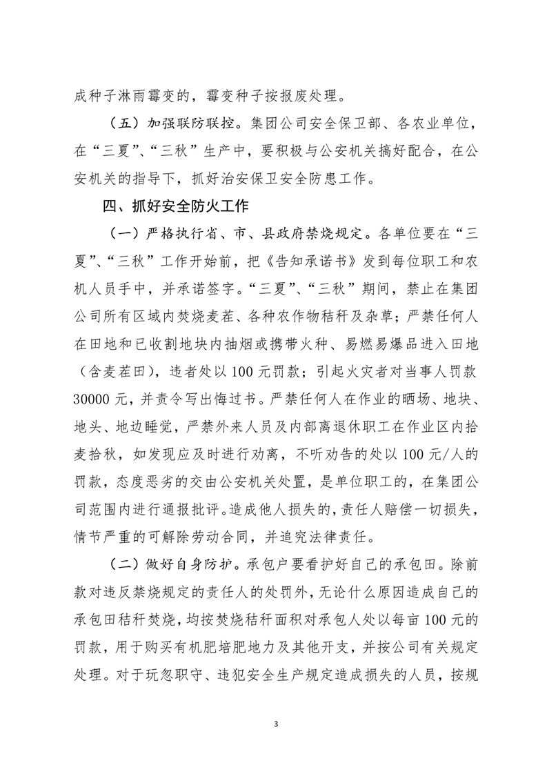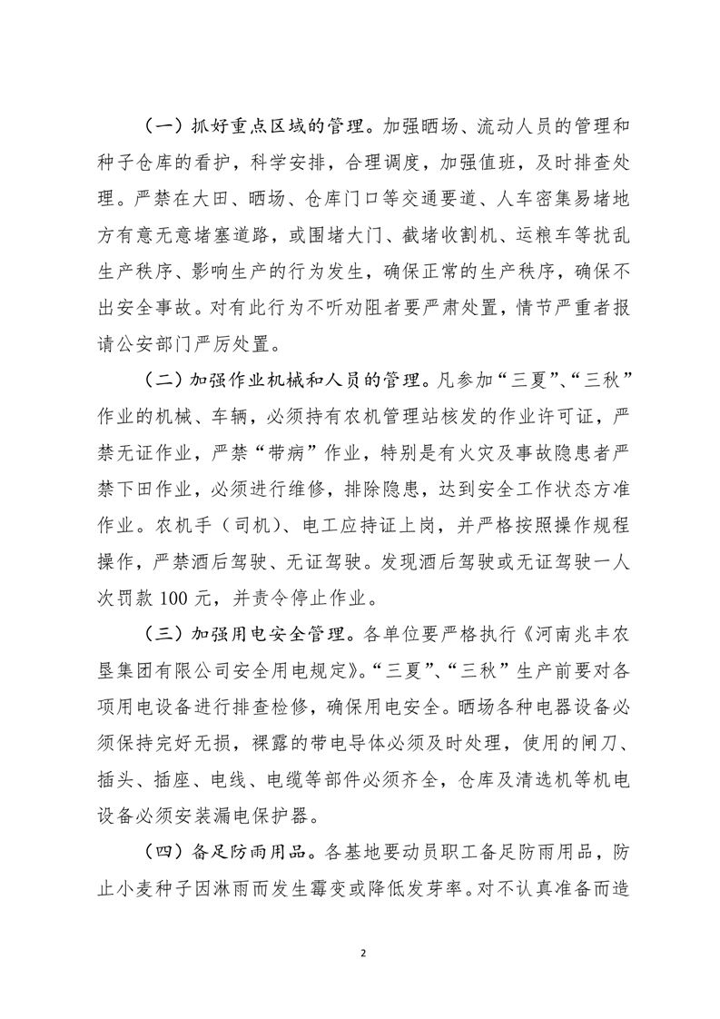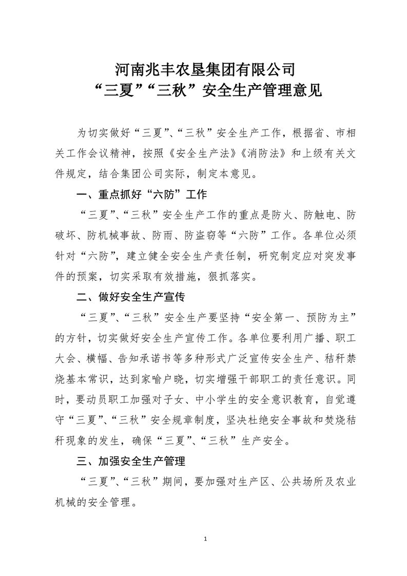 河南兆豐農(nóng)墾集團(tuán)有限公司 “三夏”“三秋”安全生產(chǎn)管理意見(jiàn)