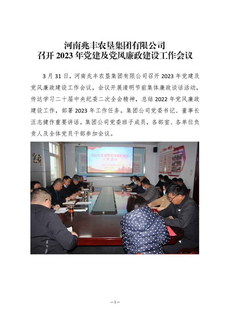 · 河南兆豐農墾集團有限公司組織召開黨建及黨風廉政建設工作會議