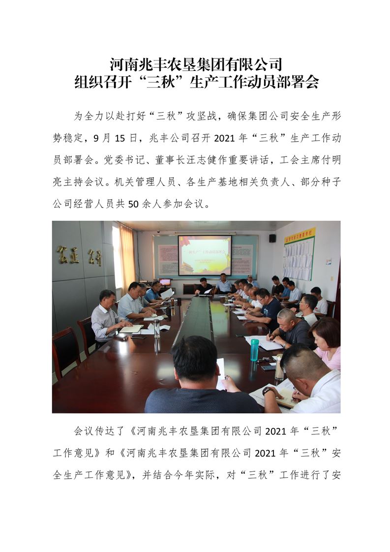 · 河南兆豐農(nóng)墾集團(tuán)有限公司 組織召開“三秋”生產(chǎn)工作動員部署會