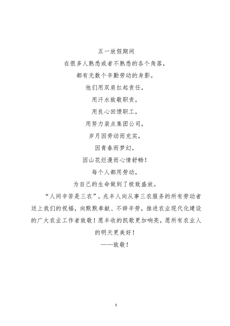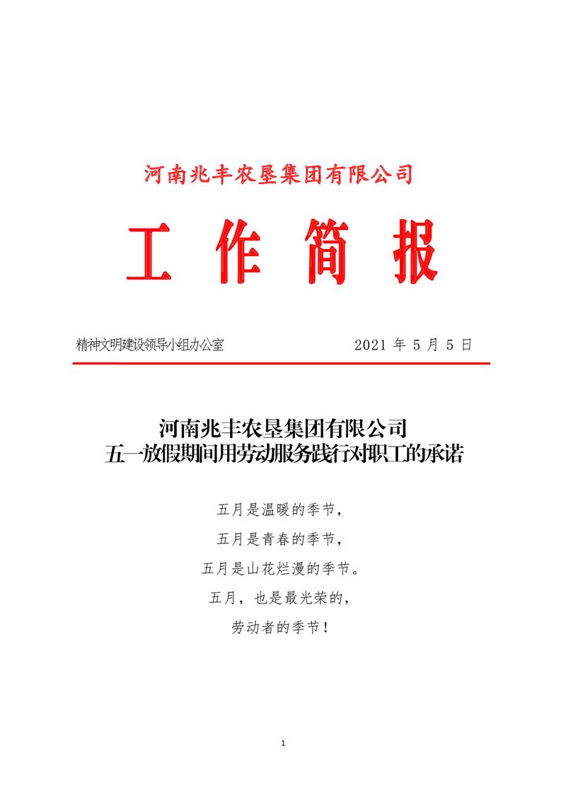 · 河南兆豐農(nóng)墾集團(tuán)有限公司 五一放假期間用勞動服務(wù)踐行對職工的承諾