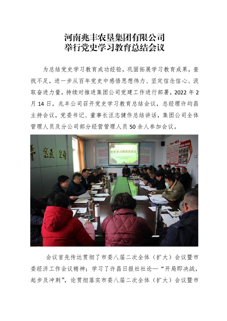 · 河南兆豐農(nóng)墾集團(tuán)有限公司 舉行黨史學(xué)習(xí)教育總結(jié)會(huì)議