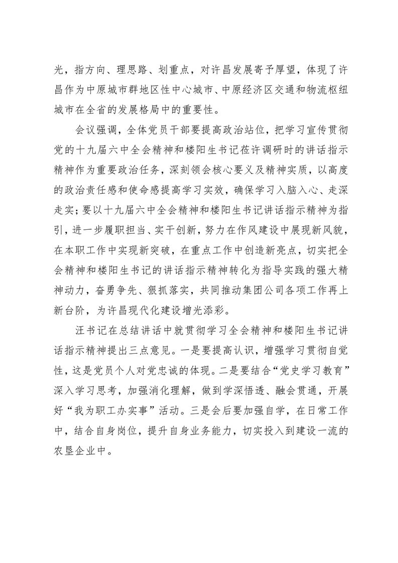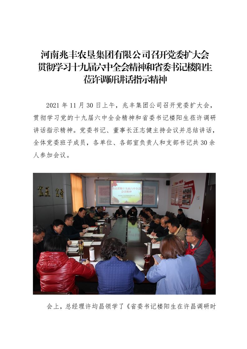 · 河南兆豐農(nóng)墾集團(tuán)有限公司 召開黨委擴(kuò)大會(huì) 貫徹學(xué)習(xí)十九屆六中全會(huì)精神和省委書記樓陽生 蒞許調(diào)研講話指示精神