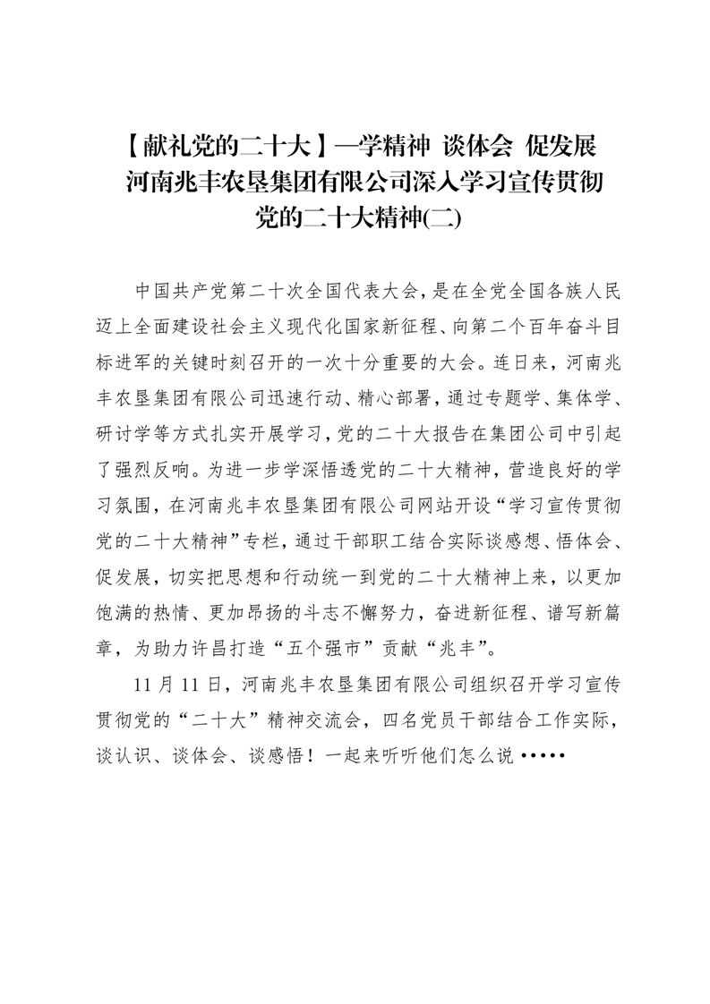 · 【獻(xiàn)禮黨的二十大】—學(xué)精神?談體會 促發(fā)展? 河南兆豐農(nóng)墾集團(tuán)有限公司深入學(xué)習(xí)宣傳貫徹黨的二十大精神(二)