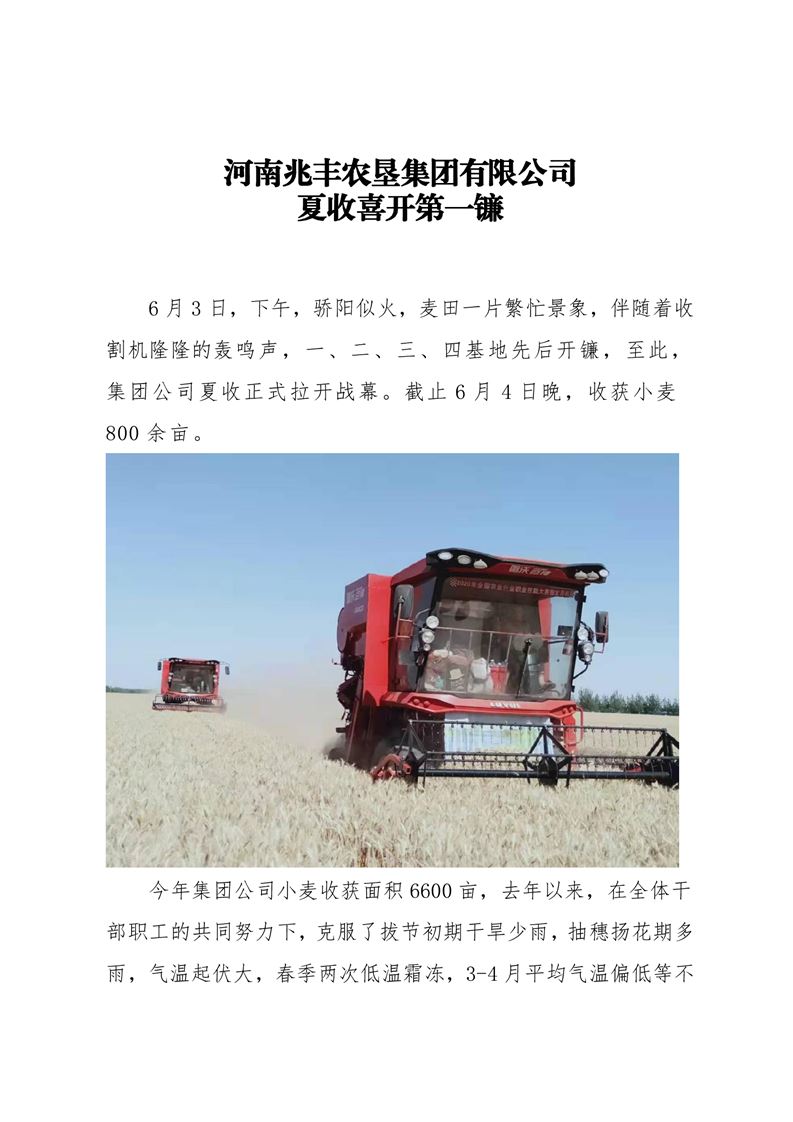 · 河南兆豐農(nóng)墾集團(tuán)有限公司 夏收喜開第一鐮