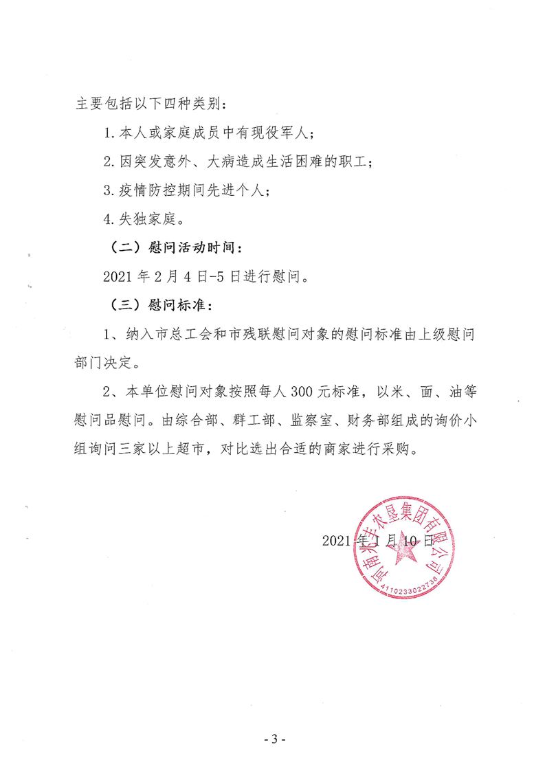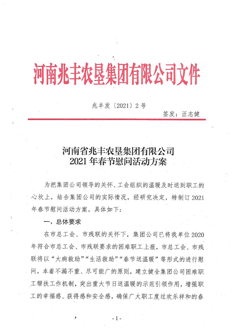 · 河南省兆豐農(nóng)墾集團(tuán)有限公司 2021年春節(jié)慰問活動(dòng)方案