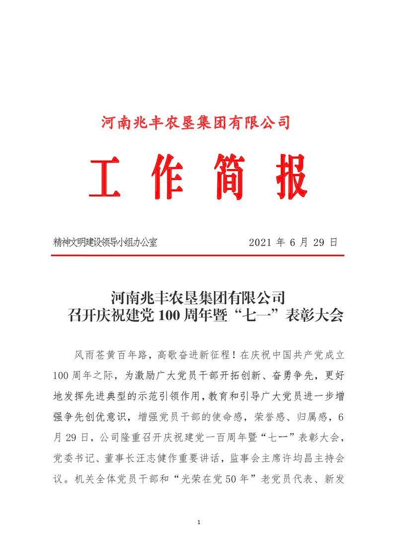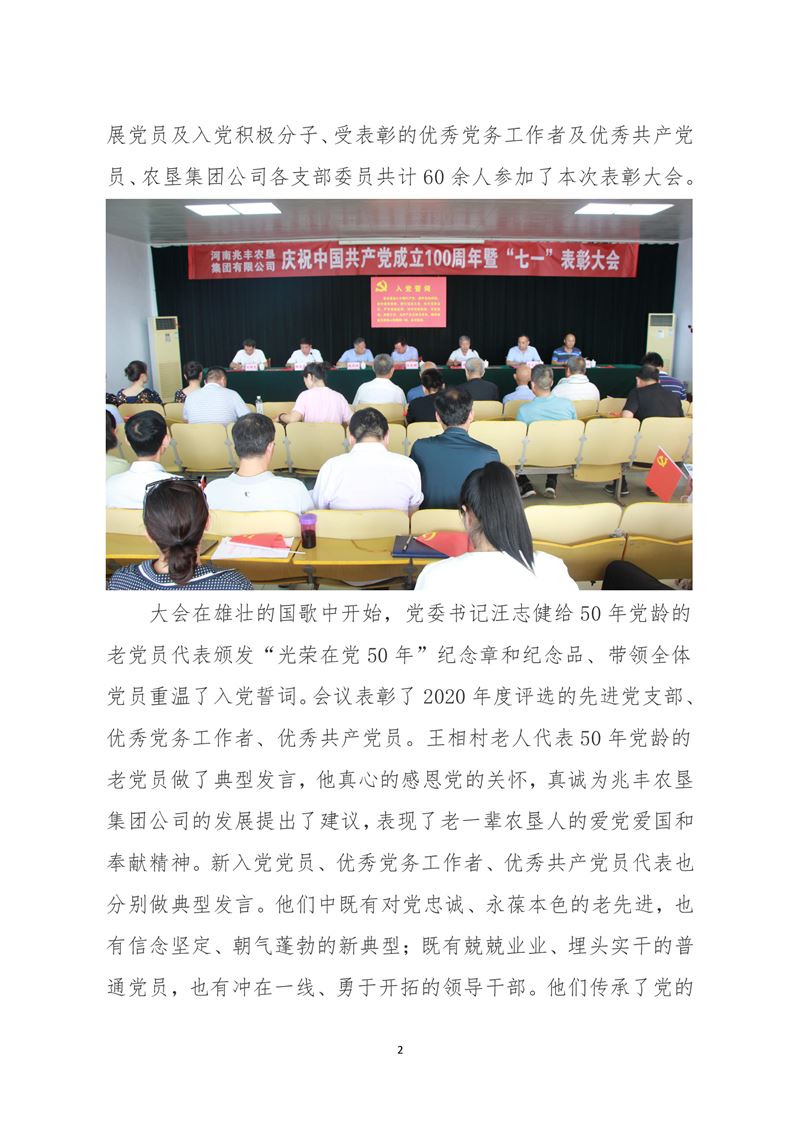 · 河南兆豐農(nóng)墾集團(tuán)有限公司 召開慶祝建黨100周年暨“七一”表彰大會