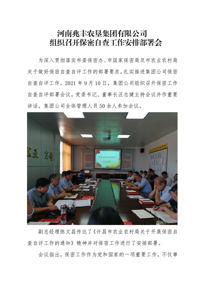 · 河南兆豐農(nóng)墾集團(tuán)有限公司 組織召開保密自查工作安排部署會(huì)