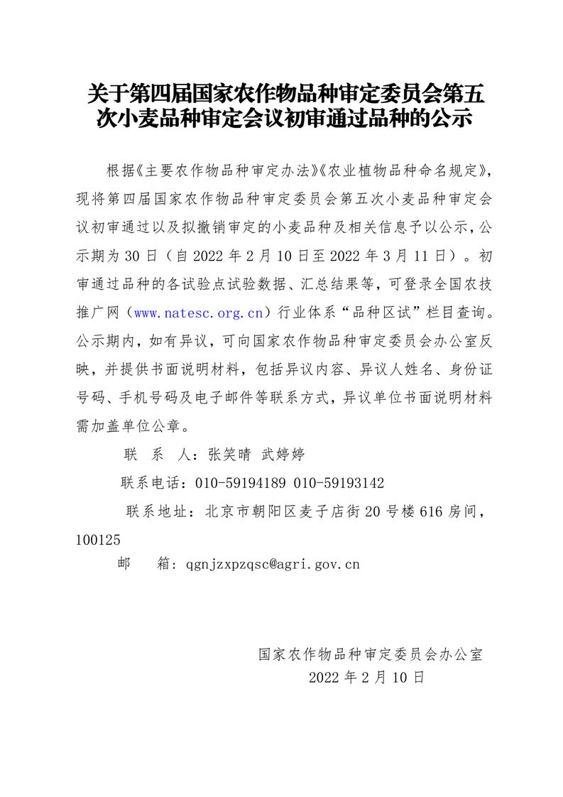 · 祝賀河南兆豐農(nóng)墾集團(tuán)有限公司 小麥品種兆豐6號(hào)、兆豐3188通過(guò)國(guó)家初審