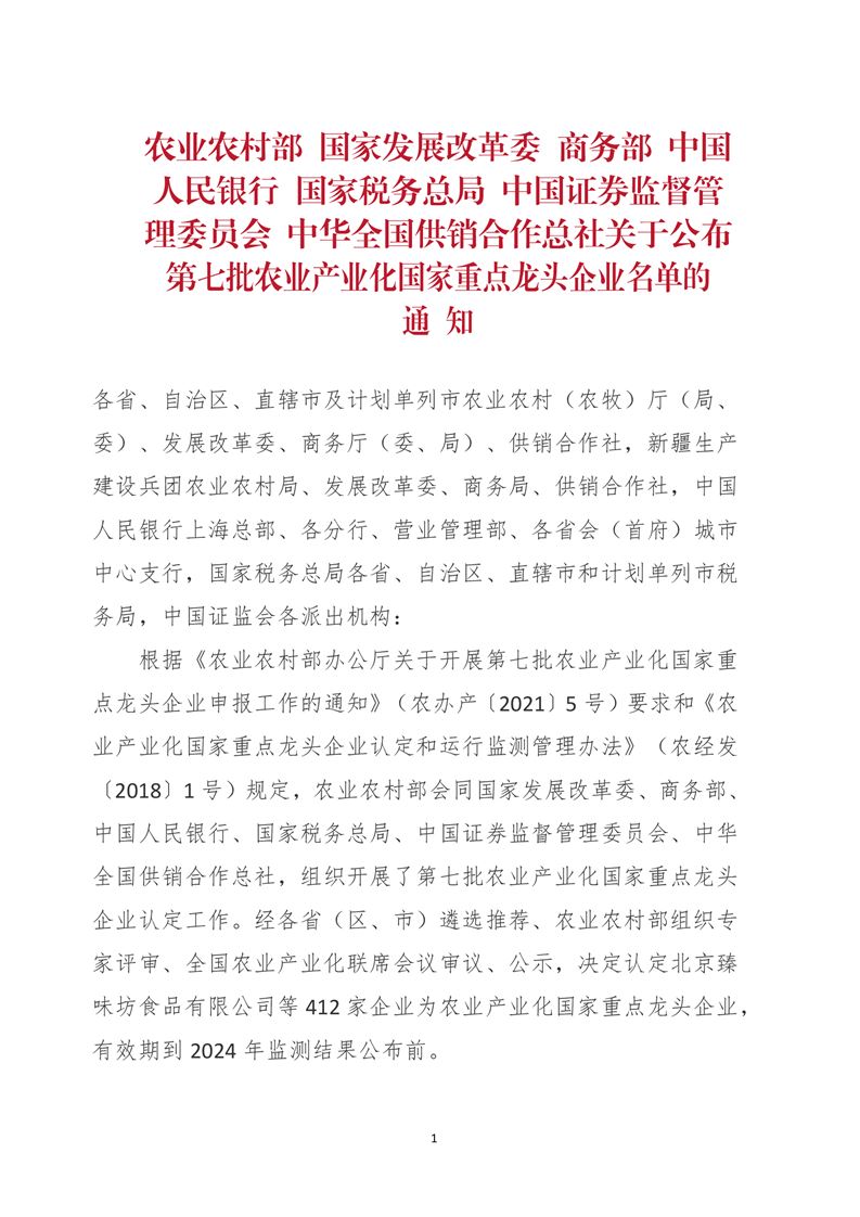 · 祝賀河南兆豐農(nóng)墾集團(tuán)有限公司榮獲第七批農(nóng)業(yè)產(chǎn)業(yè)化國(guó)家重點(diǎn)龍頭企業(yè)