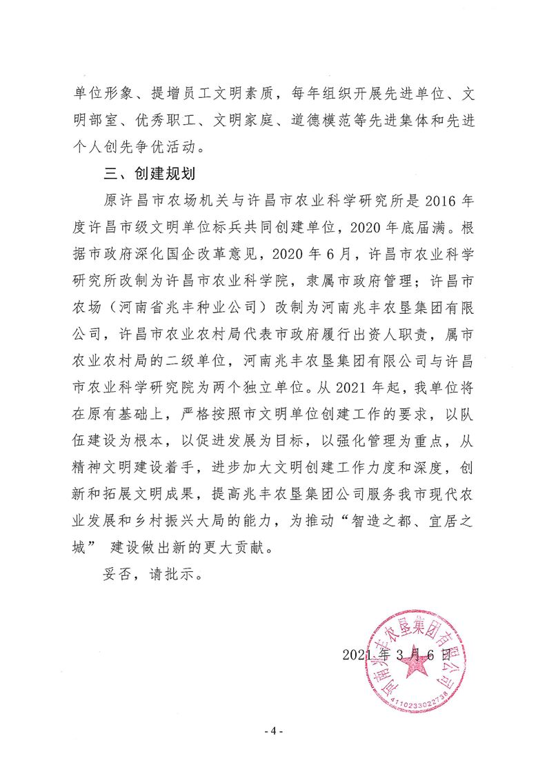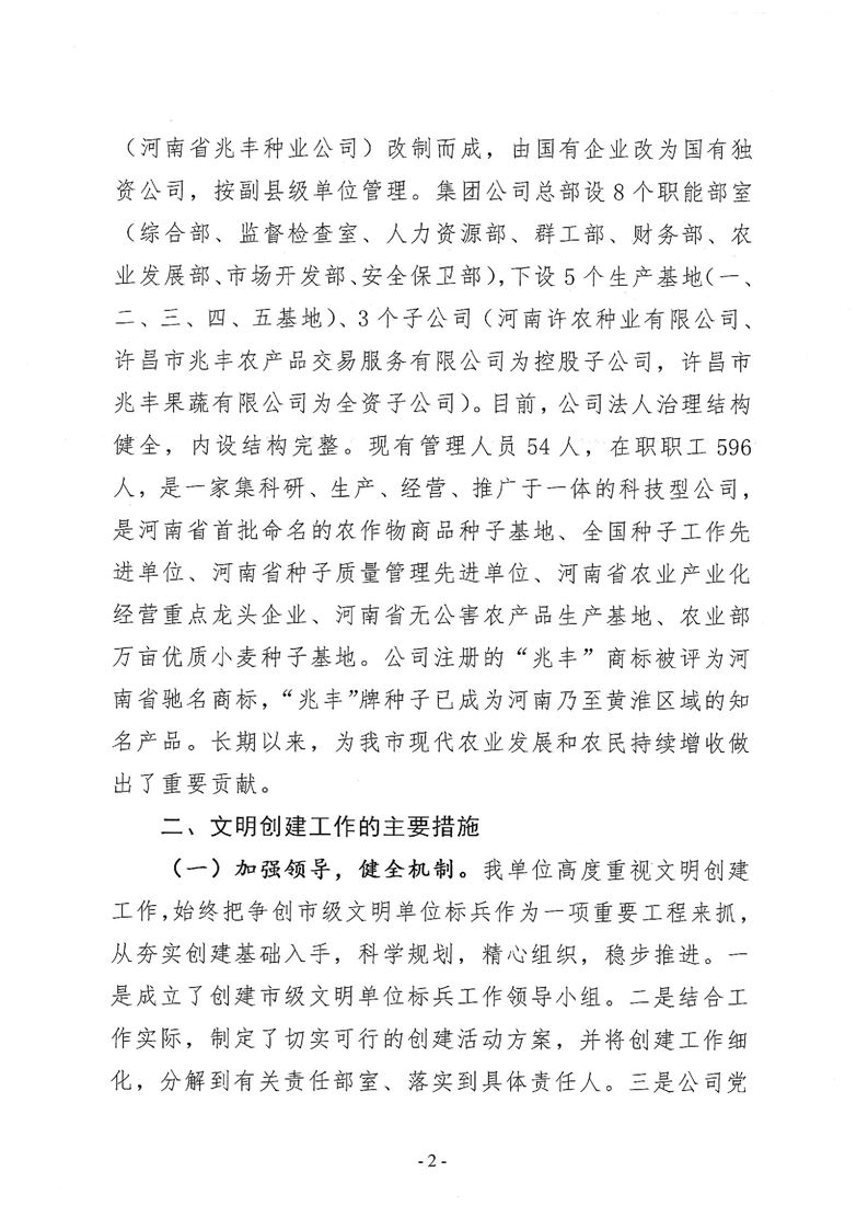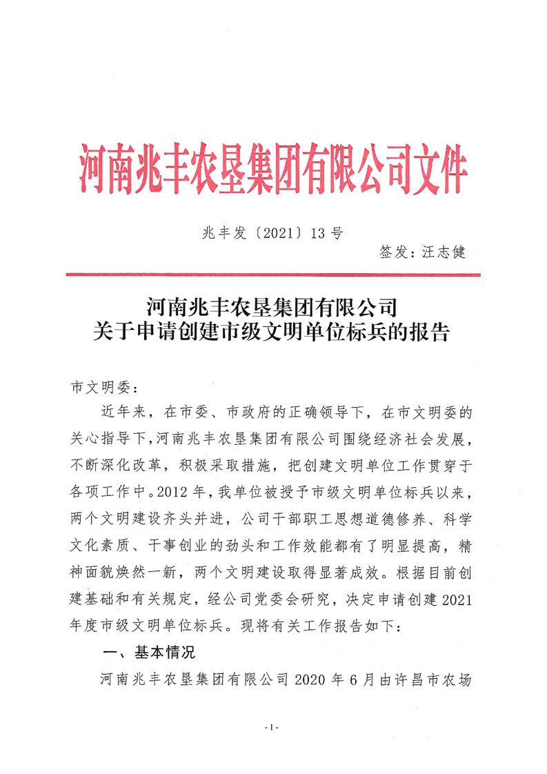 · 河南兆豐農(nóng)墾集團有限公司 關(guān)于申請創(chuàng)建市級文明單位標(biāo)兵的報告