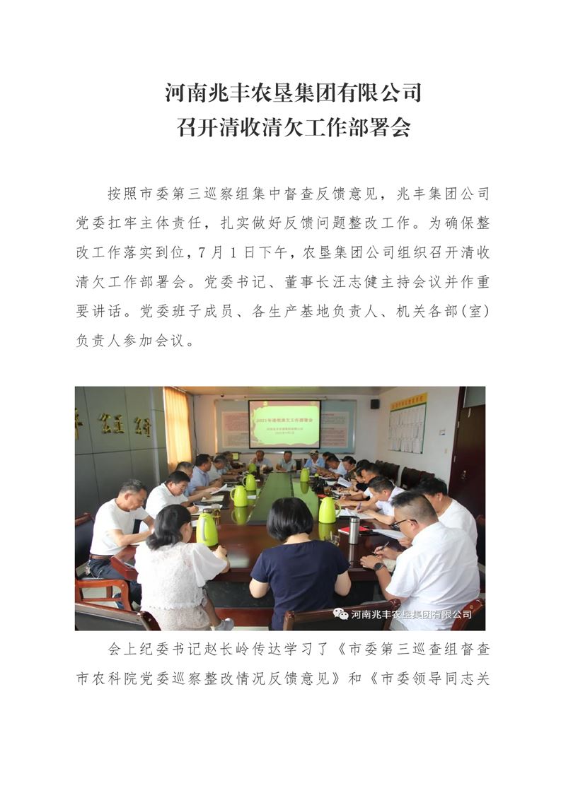 · 河南兆豐農(nóng)墾集團(tuán)有限公司 召開清收清欠工作部署會
