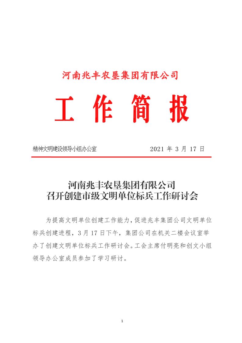 · 河南兆豐農(nóng)墾集團(tuán)有限公司 召開創(chuàng)建市級文明單位標(biāo)兵工作研討會