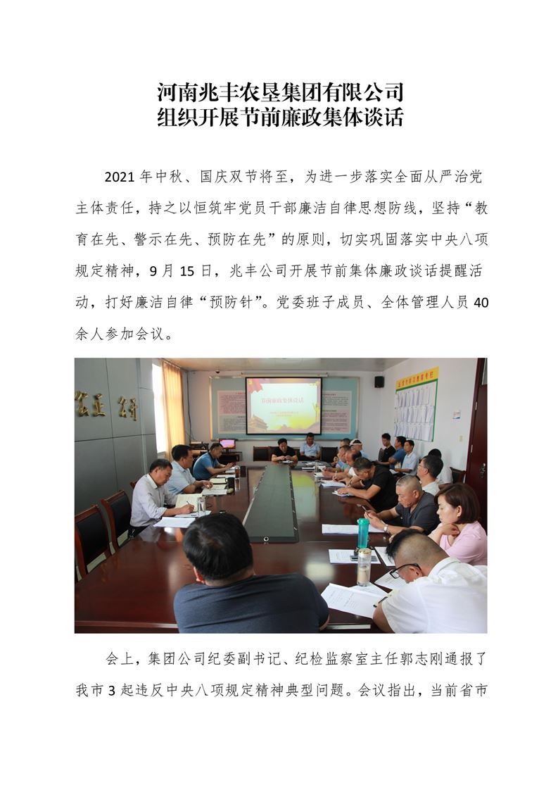 · 河南兆豐農(nóng)墾集團有限公司 組織開展中秋、國慶節(jié)前廉政集體談話