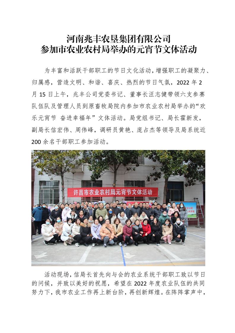 · 河南兆豐農(nóng)墾集團有限公司 參加市農(nóng)業(yè)農(nóng)村局舉辦的元宵節(jié)文體活動