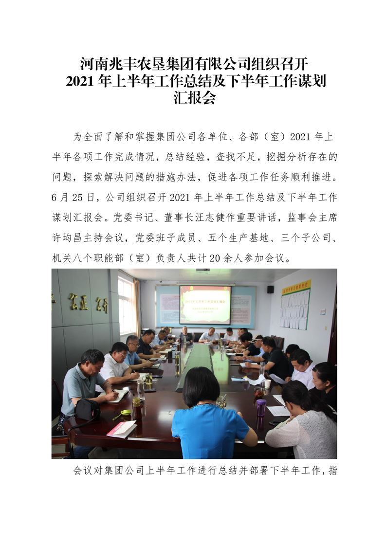 · 河南兆豐農(nóng)墾集團(tuán)有限公司 組織召開2021年上半年工作總結(jié)及下半年工作謀劃 匯報(bào)會(huì)