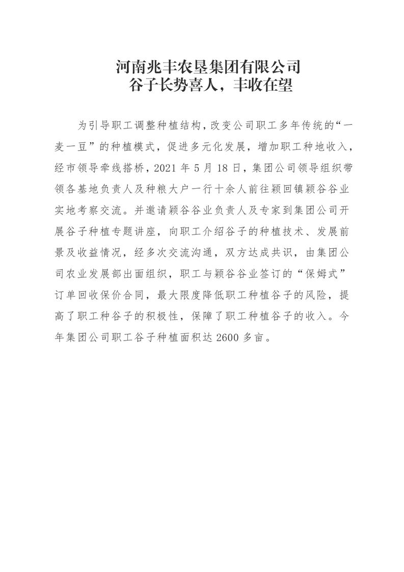 · 河南兆豐農(nóng)墾集團(tuán)有限公司 谷子長勢喜人,豐收在望