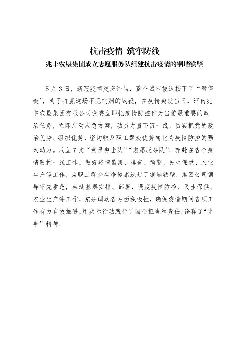 · 抗擊疫情 筑牢防線 兆豐農(nóng)墾集團(tuán)成立志愿服務(wù)隊(duì)組建抗擊疫情的銅墻鐵壁