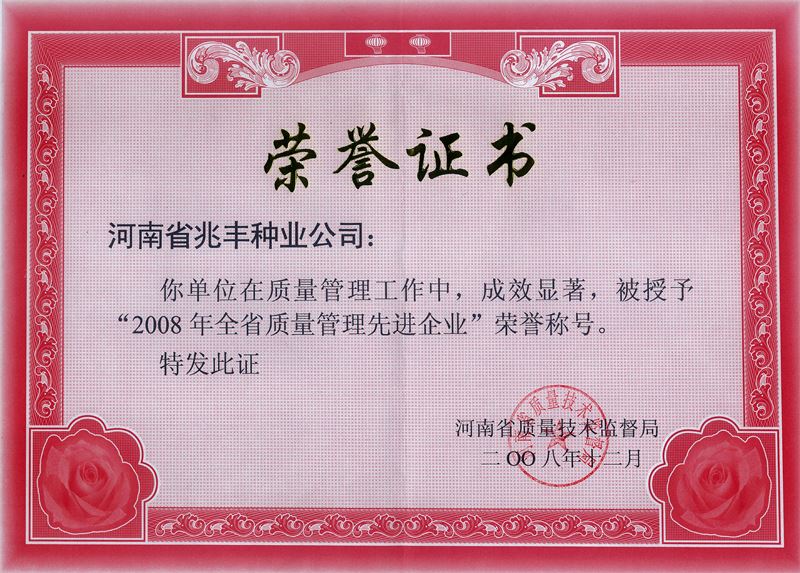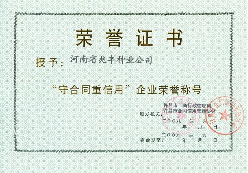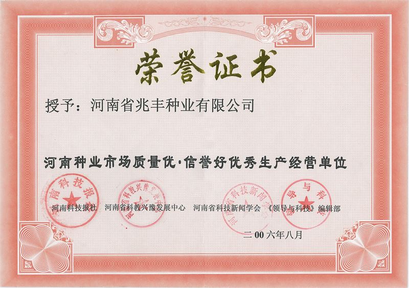 質(zhì)量好 信譽(yù)優(yōu)證書